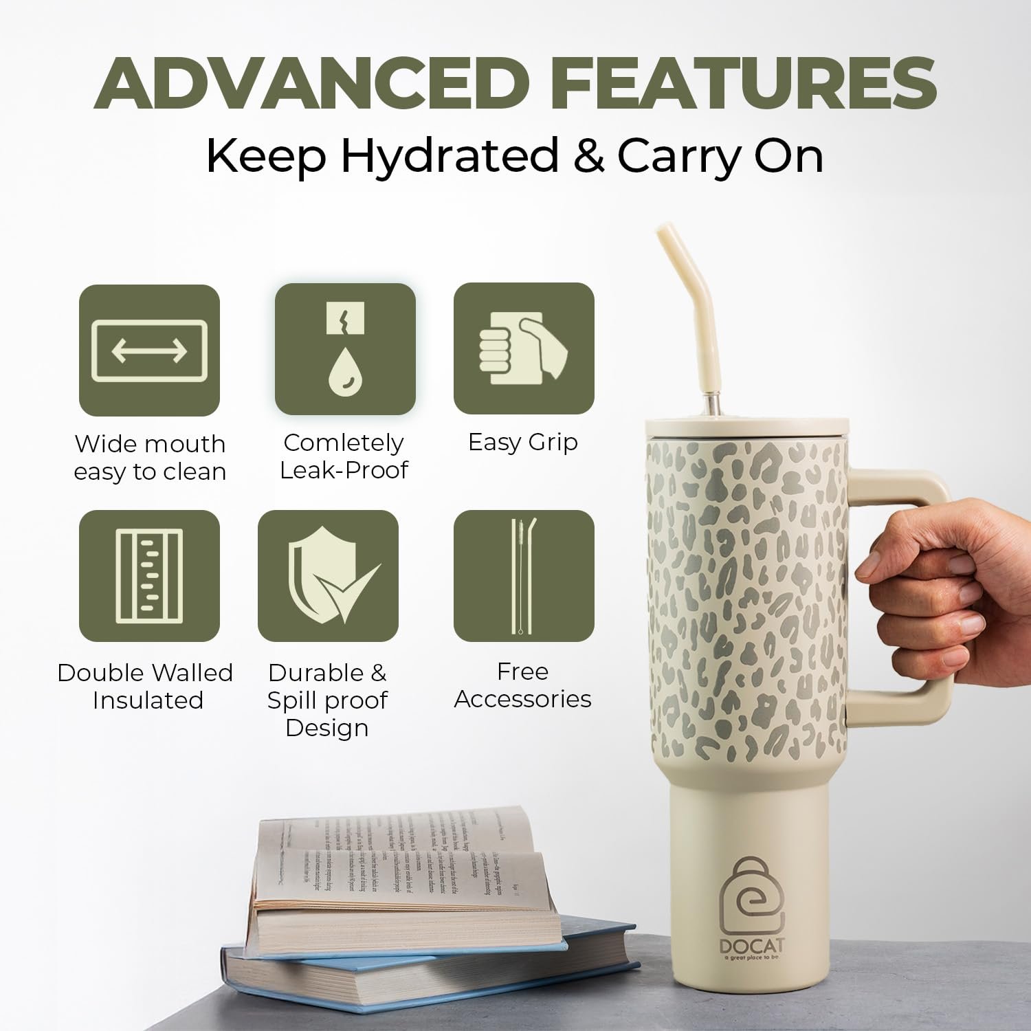 Docat 1200ML Insulated Tumbler with Straw – Stay Hydrated All Day