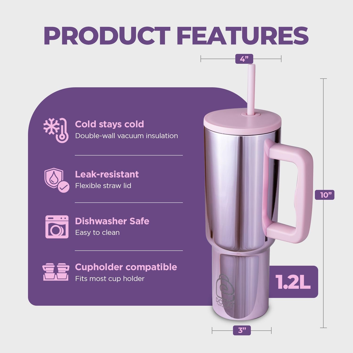 Docat 1200ML Stainless Steel Insulated Tumbler with Straw – Stay Hydrated All Day