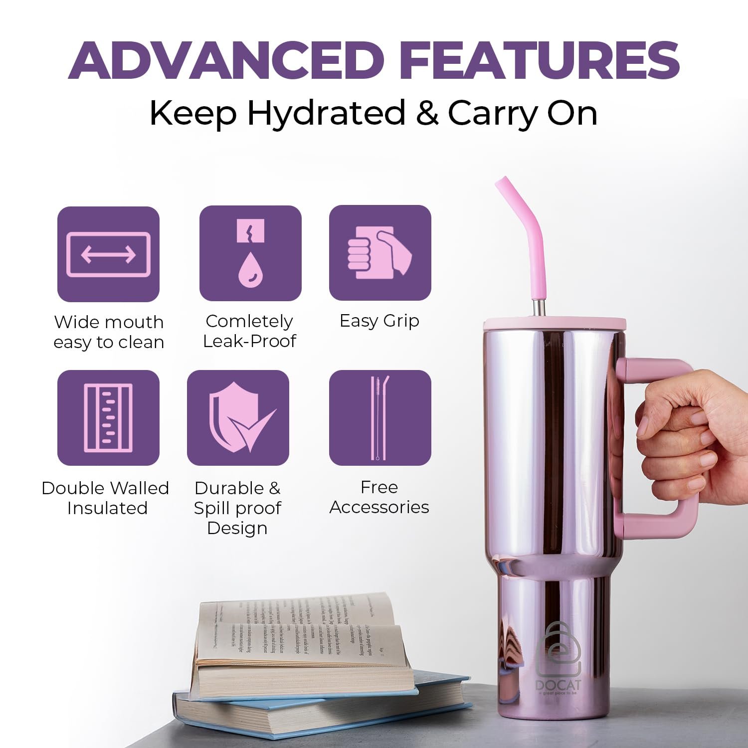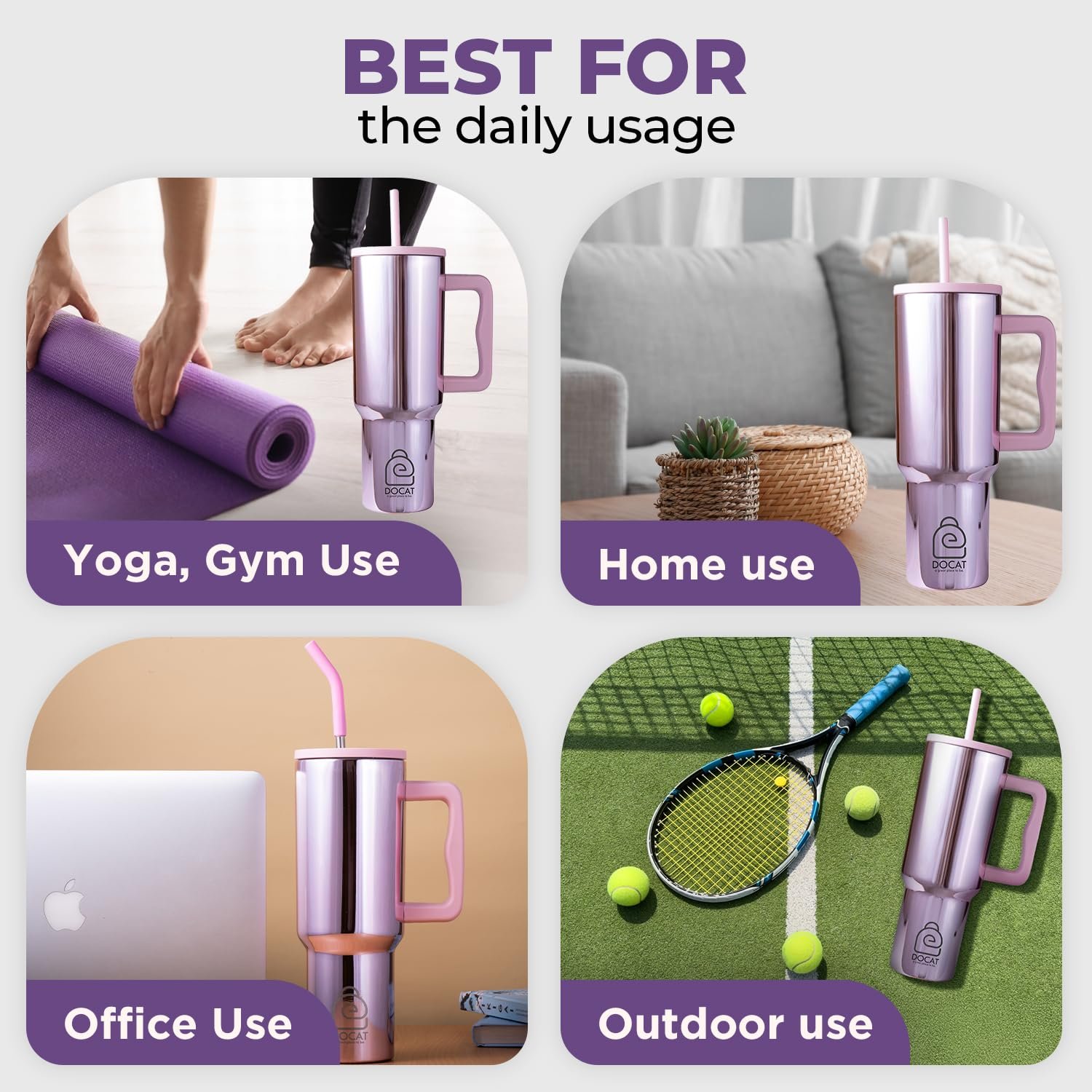 Upgrade your drinkware collection with Docat’s premium insulated tumbler and enjoy convenience, style, and performance in one product.