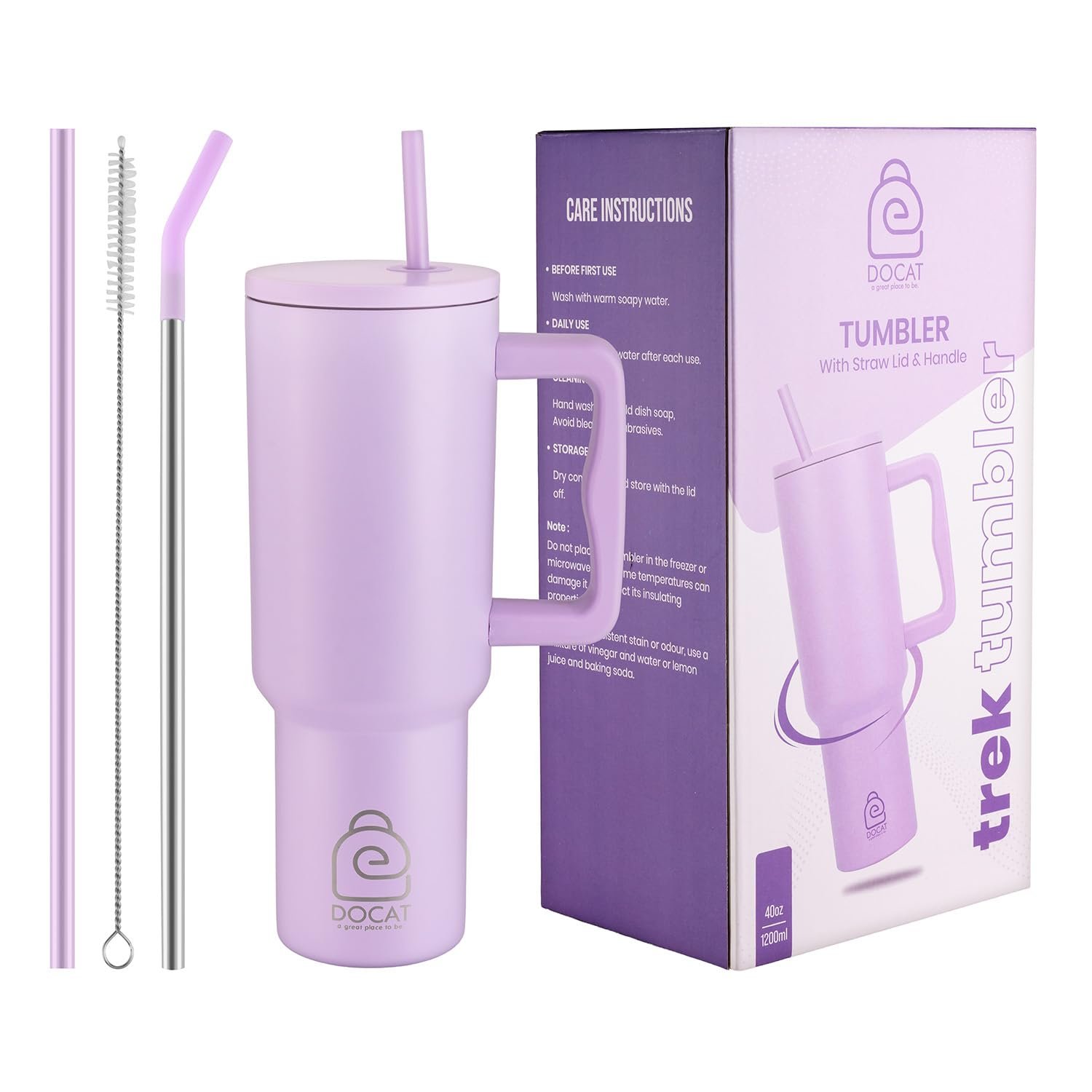 Docat 1200ML Stainless Steel Insulated Tumbler with Straw – Stay Hydrated All Day