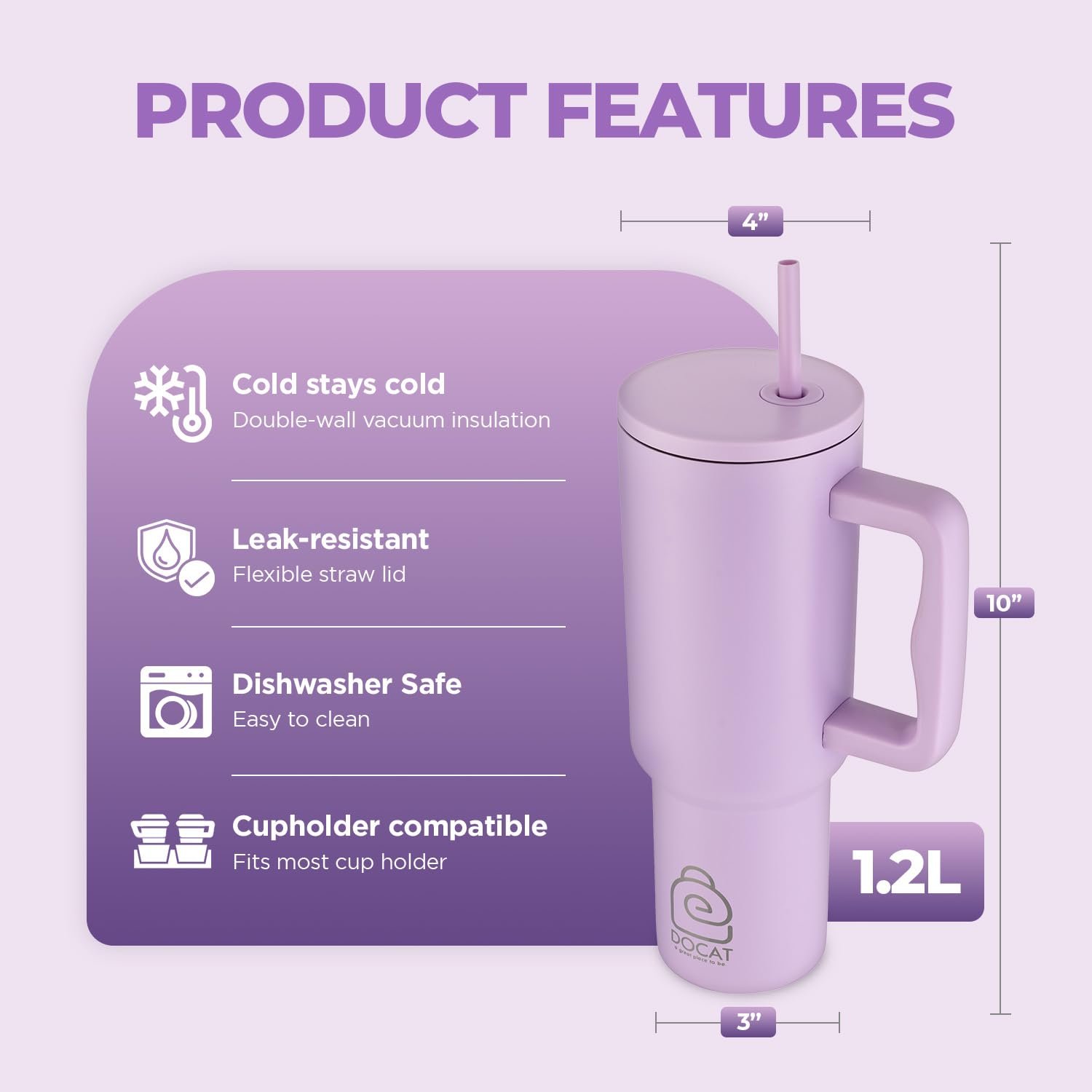 Upgrade your drinkware collection with Docat’s premium insulated tumbler and enjoy convenience, style, and performance in one product.
