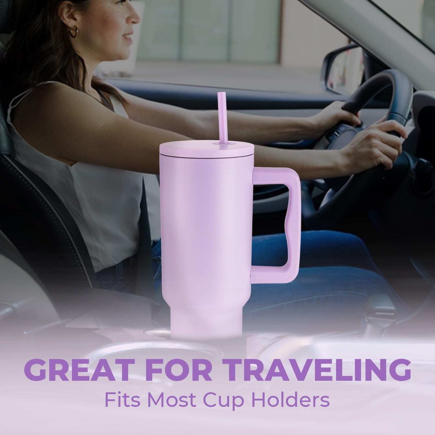 1200ML Stainless Steel Tumbler with Lid and Straw – Lavender Mist