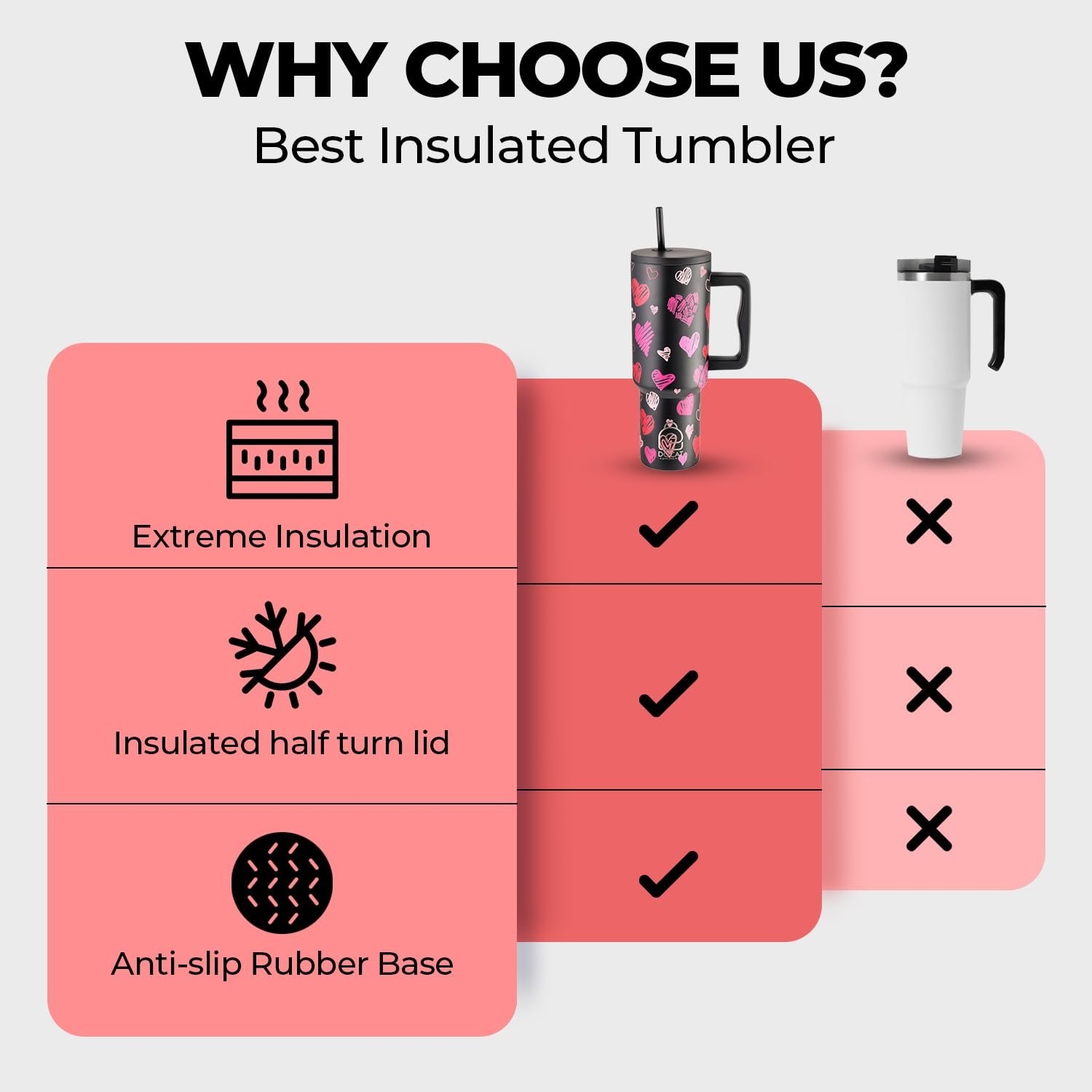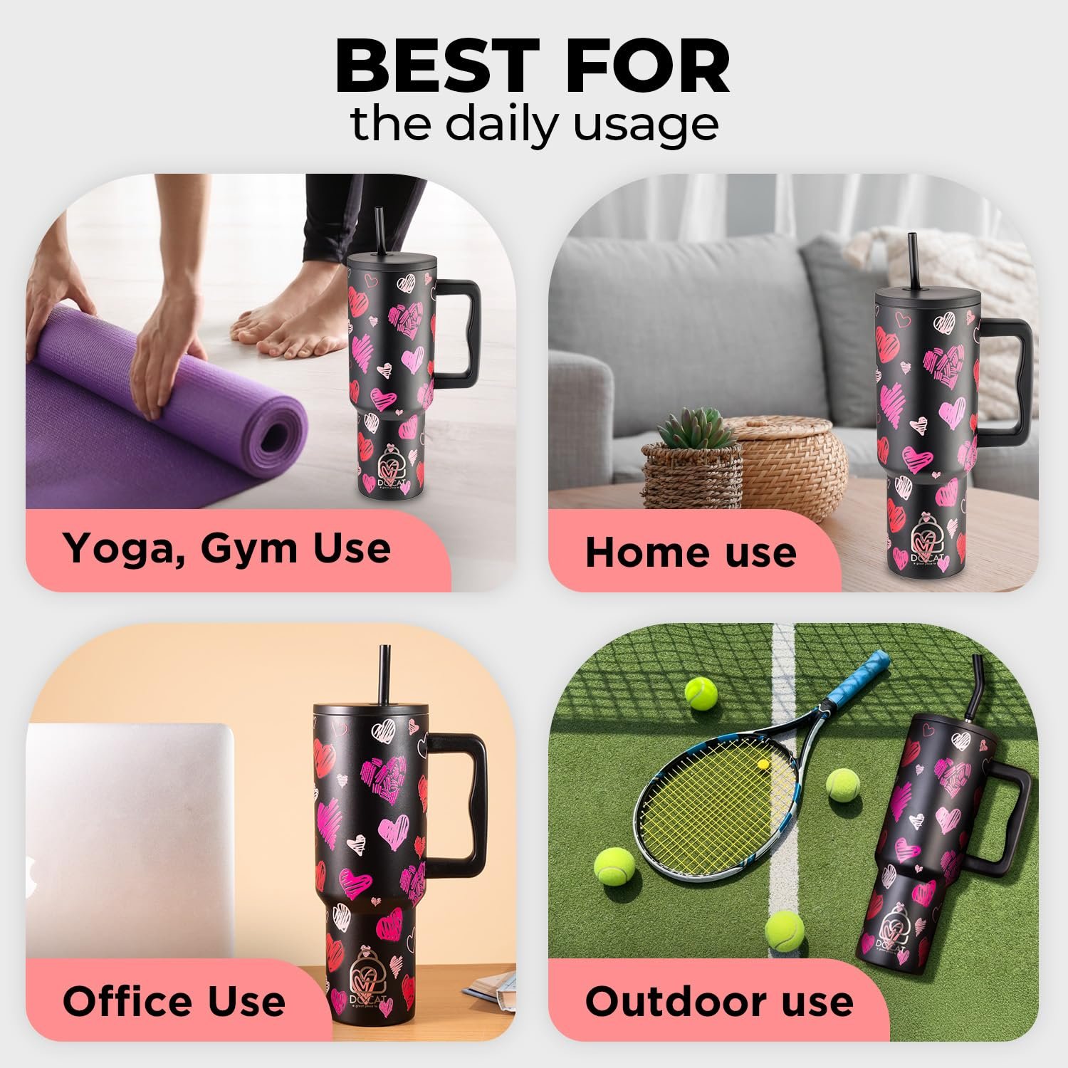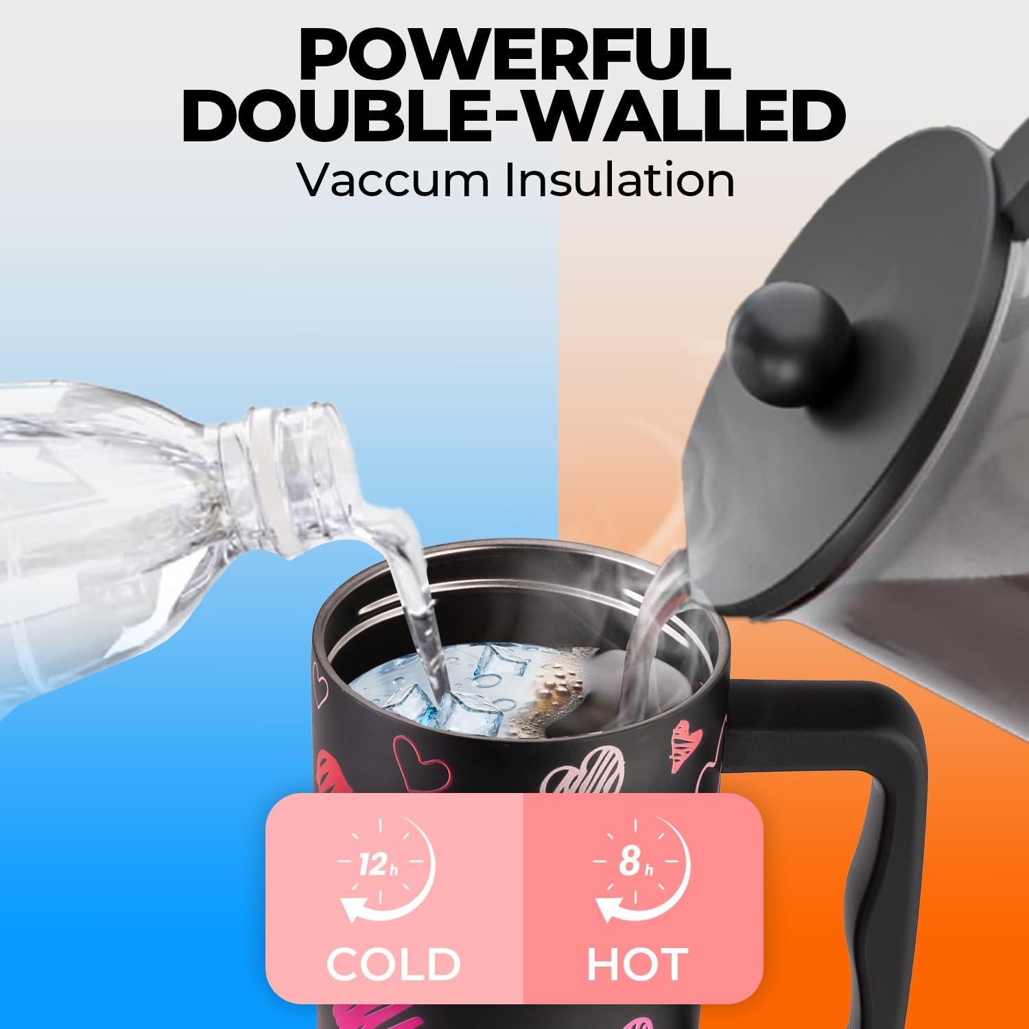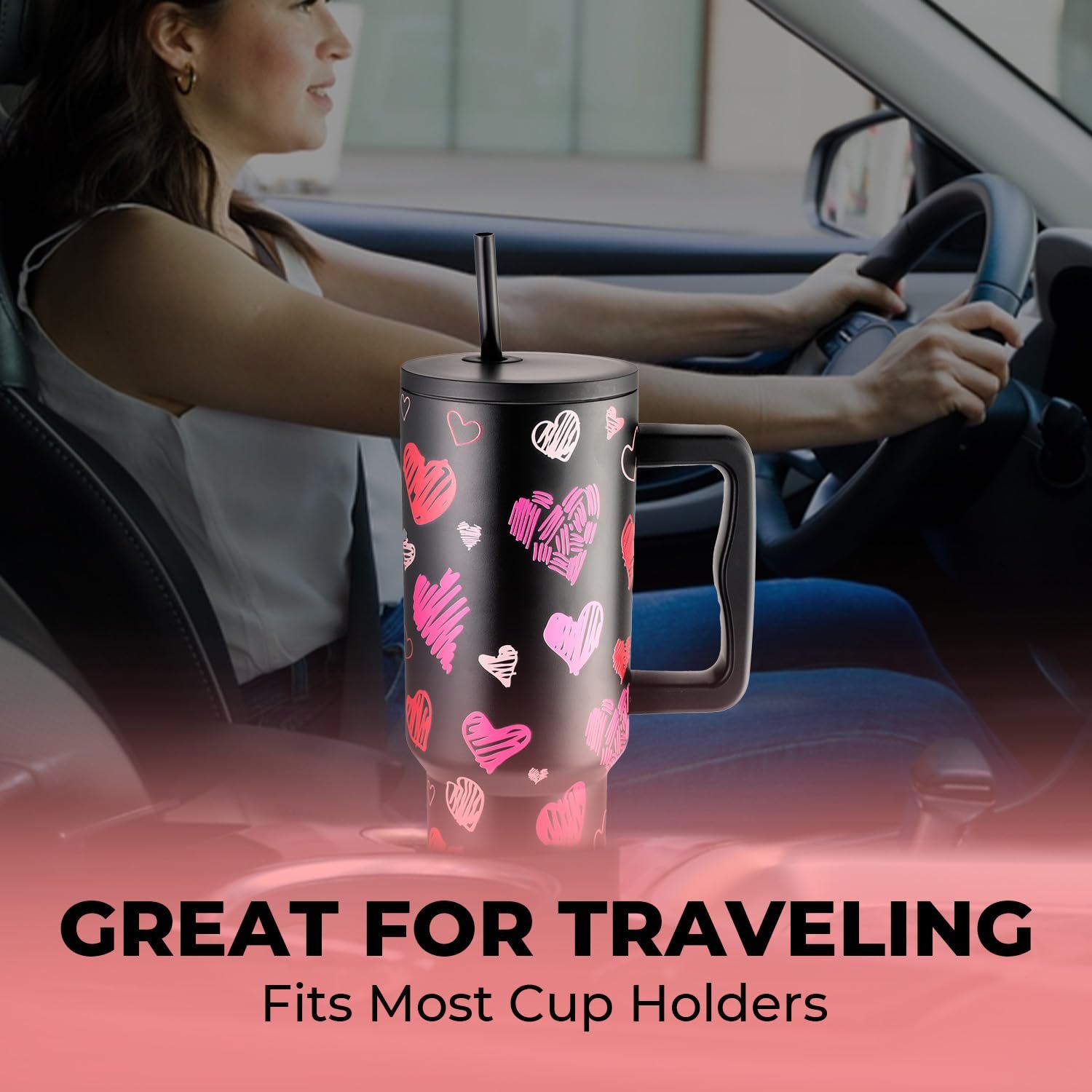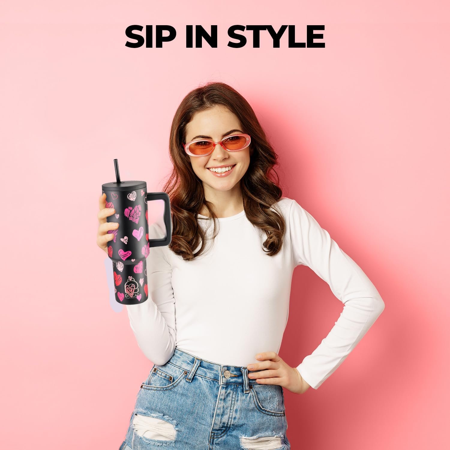 1200ML Stainless Steel Tumbler with Lid and Straw – Midnight Hearts