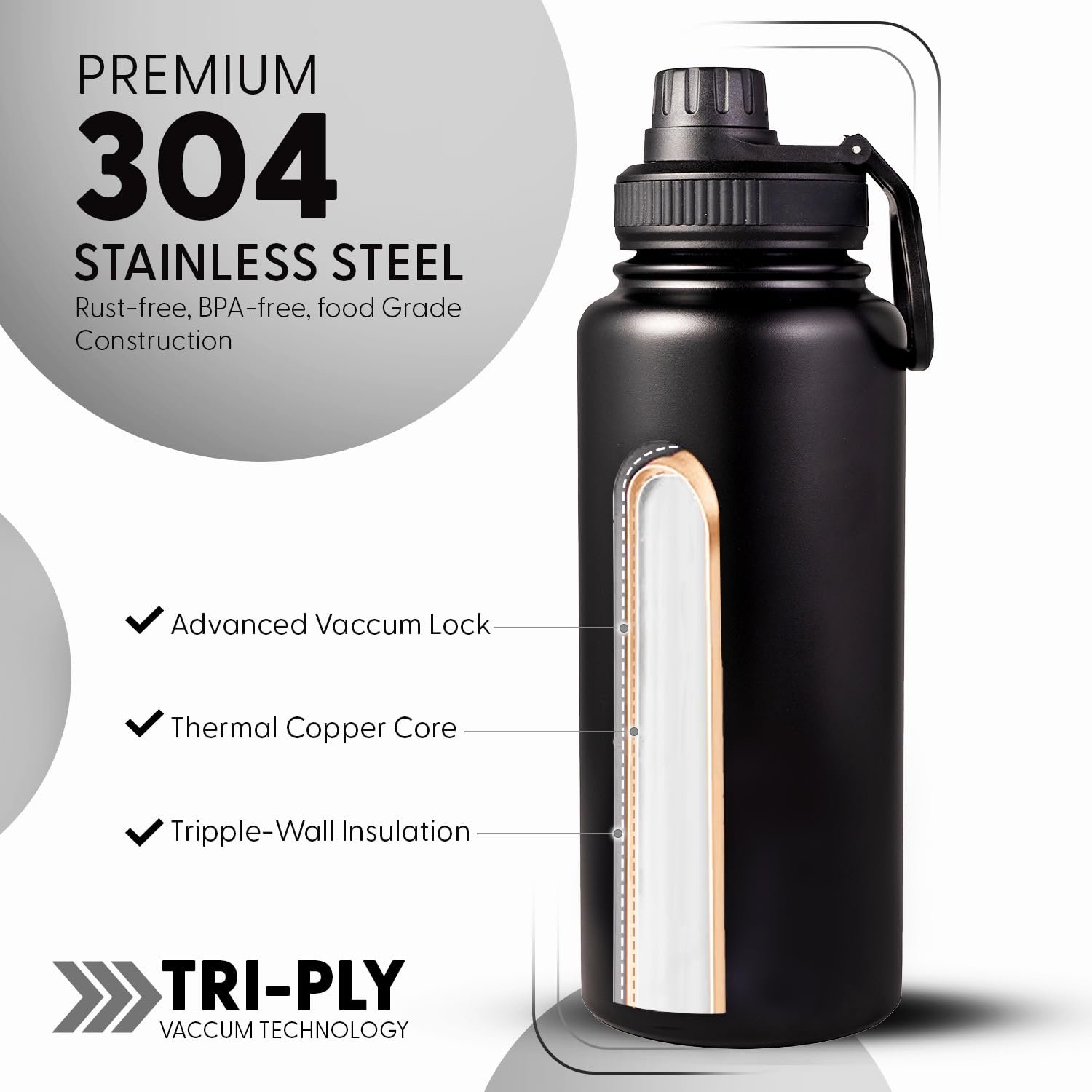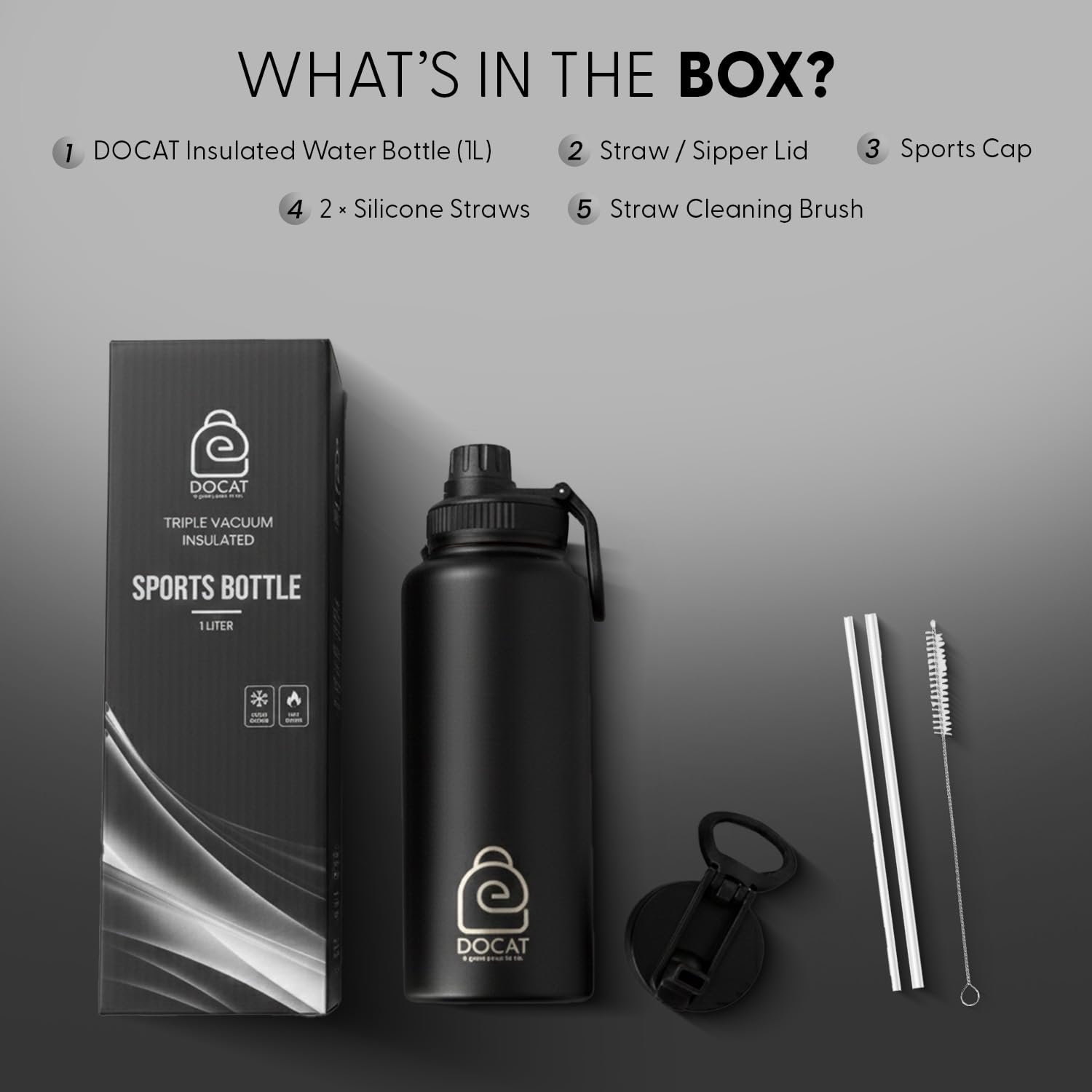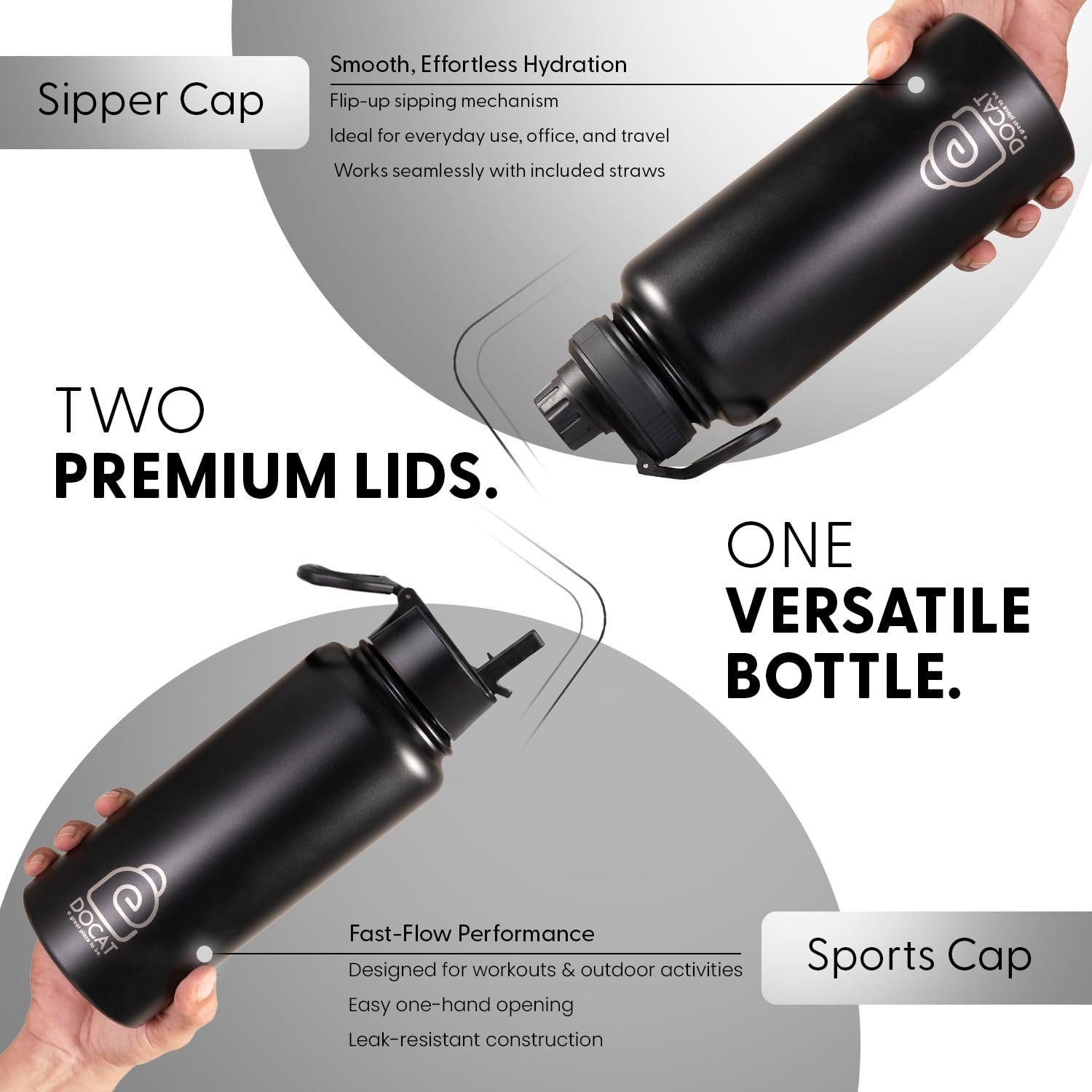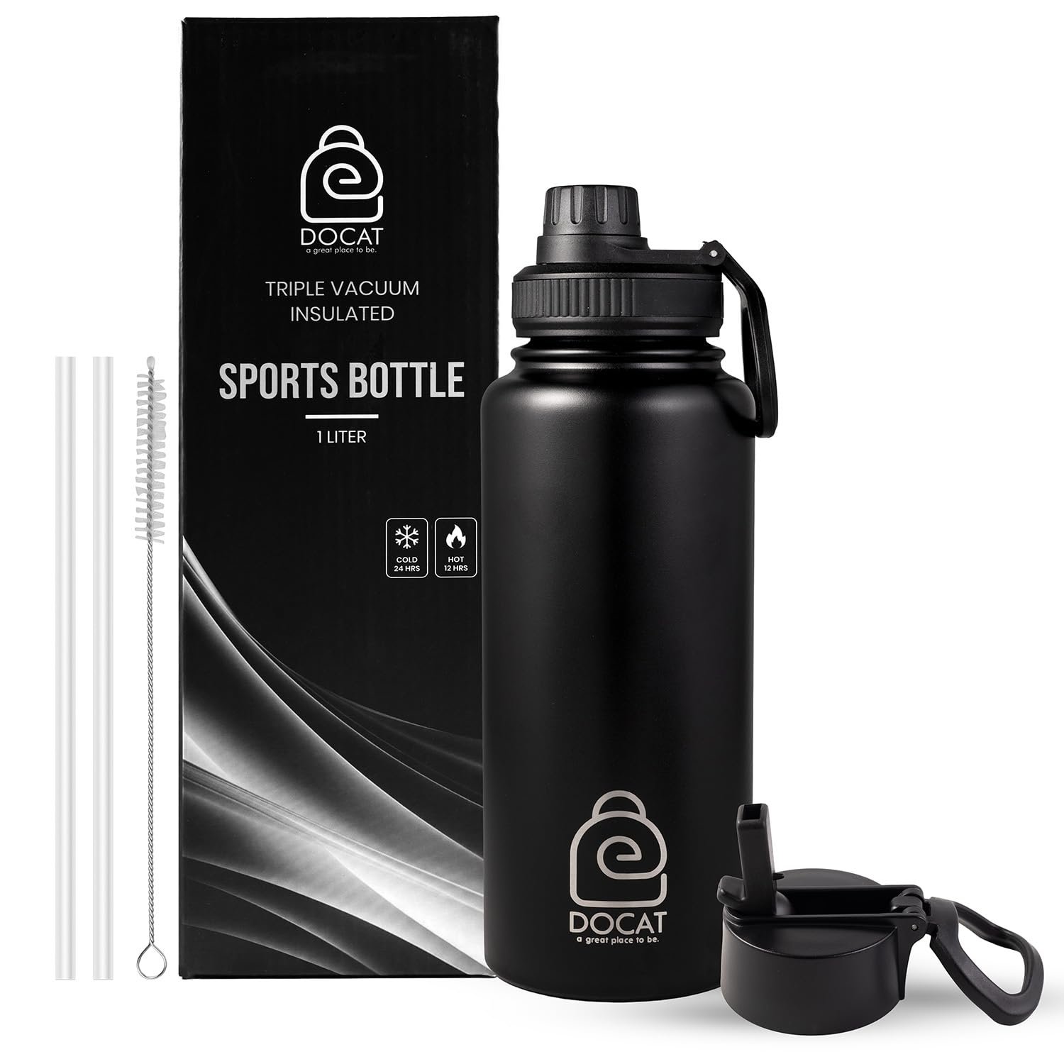 DOCAT Premium Insulated Stainless Steel Water Bottle with Leakproof Lid – Black Knight