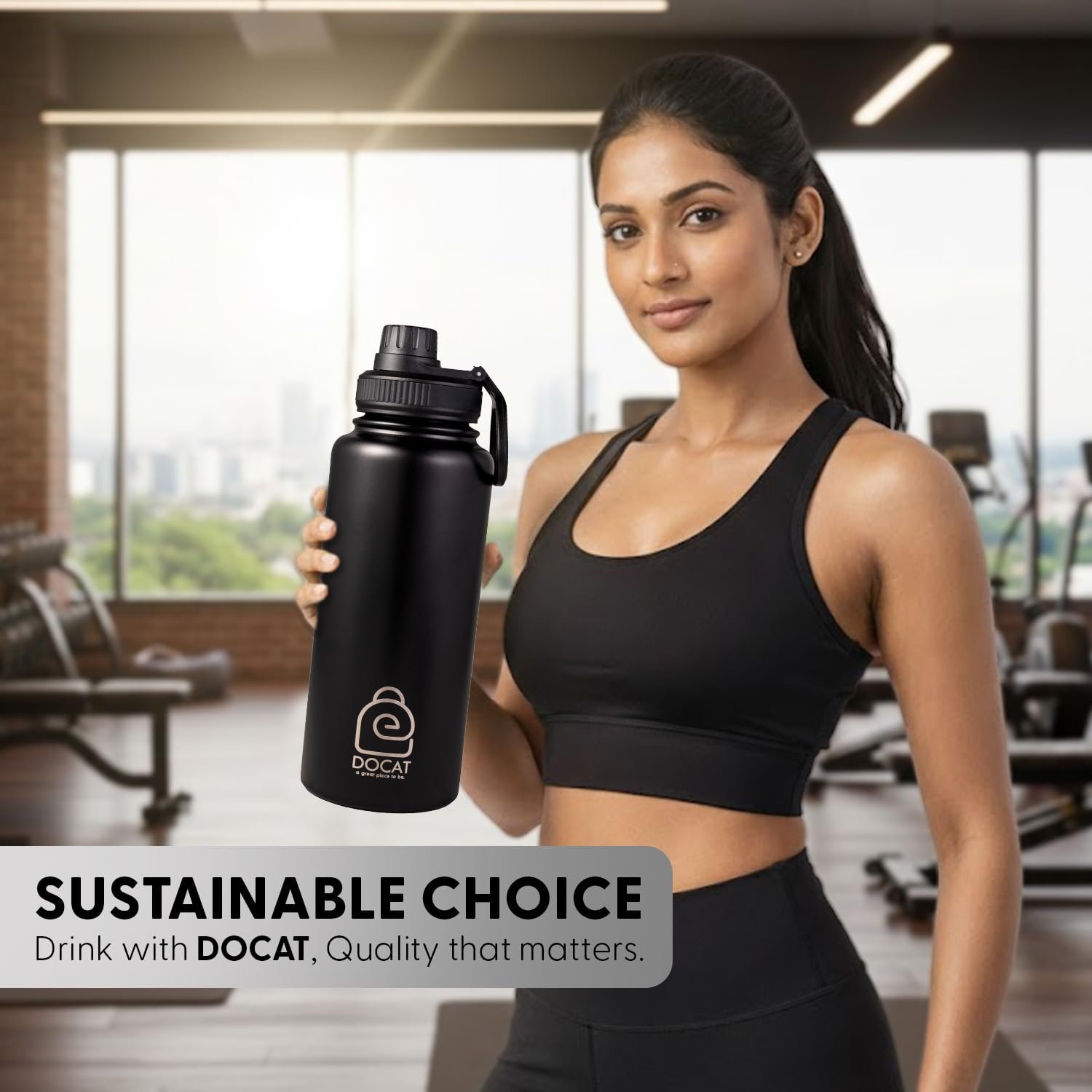 Stay hydrated in style with the Docat stainless steel insulated water bottle, designed for durability, performance, and everyday convenience. This thermosteel water bottle keeps your beverages hot or cold for long hours, making it perfect for office, travel, gym, or home use.