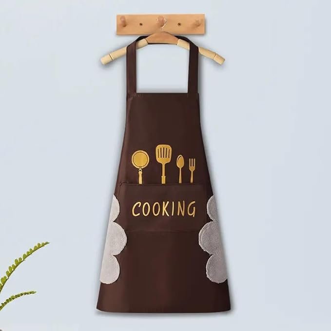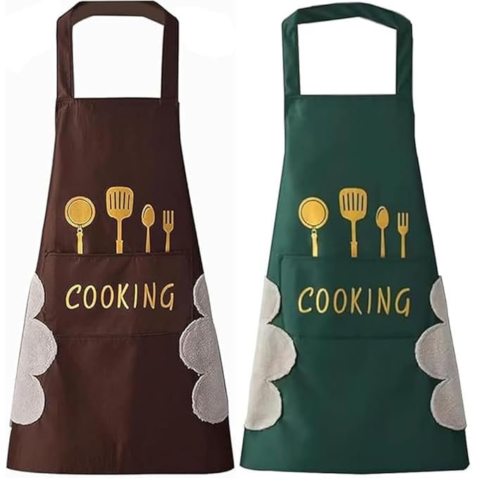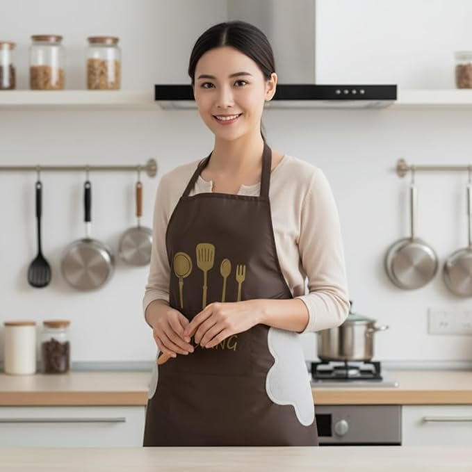 This kitchen apron is made from high-quality waterproof fabric that protects your clothes from water, oil, and food stains. It is designed for long-lasting durability and daily use.